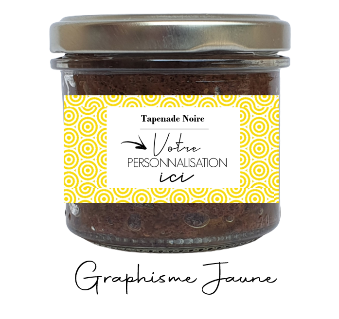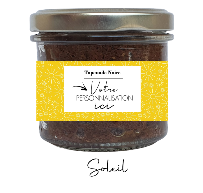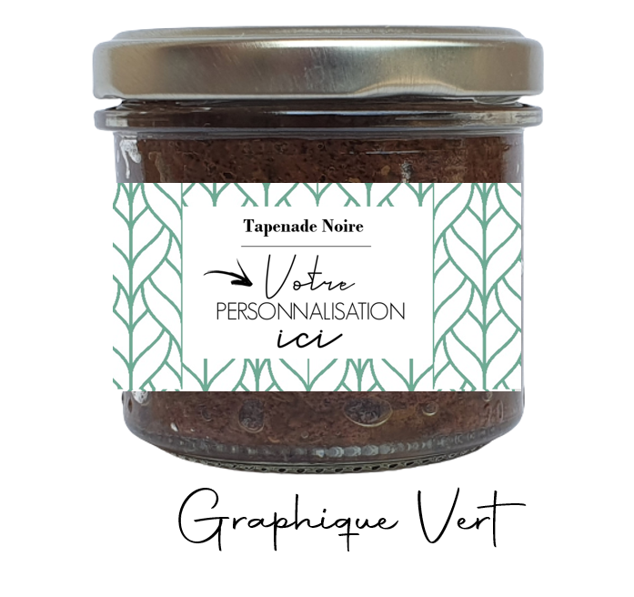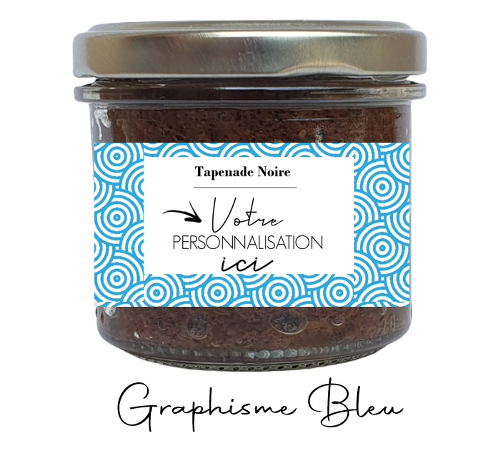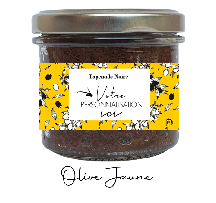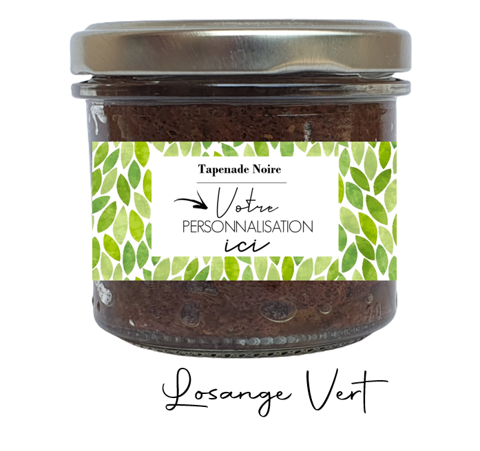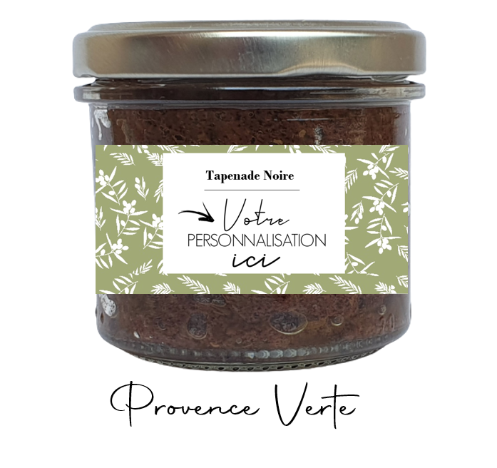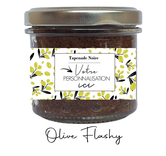 Nous vous proposons de personnaliser vos étiquettes avec VOTRE LOGO, à partir de 72 pots sur nos 13 meilleures Ventes !! (La liste des 13 Meilleures Ventes : Noire, Verte, Tomate/Basilic, Chevre/Miel, Provençale, Poivron/Romarin, Artichaut/Parmesan, Oignons Caramélisés, Chorizo, Thon/Citron, Figues, Façon Anchoïade et Truffes)